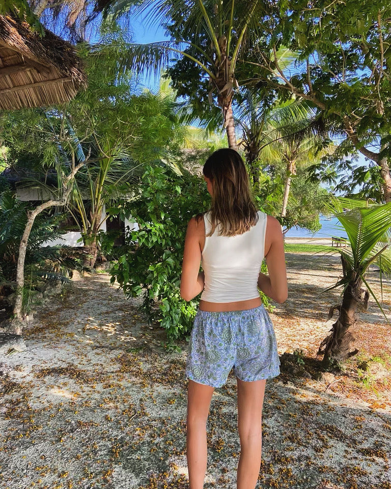 We are three sisters, Lottie, Lila & Lydia, with a love for pyjamas! Our brand was set up following a visit to India and a continued exploration of the colours, patterns, textures and craft techniques we had seen. The idea came about after spending much of our 2020 lockdown in comfort clothing. We wanted to create pyjama shorts which could also be worn out and about!