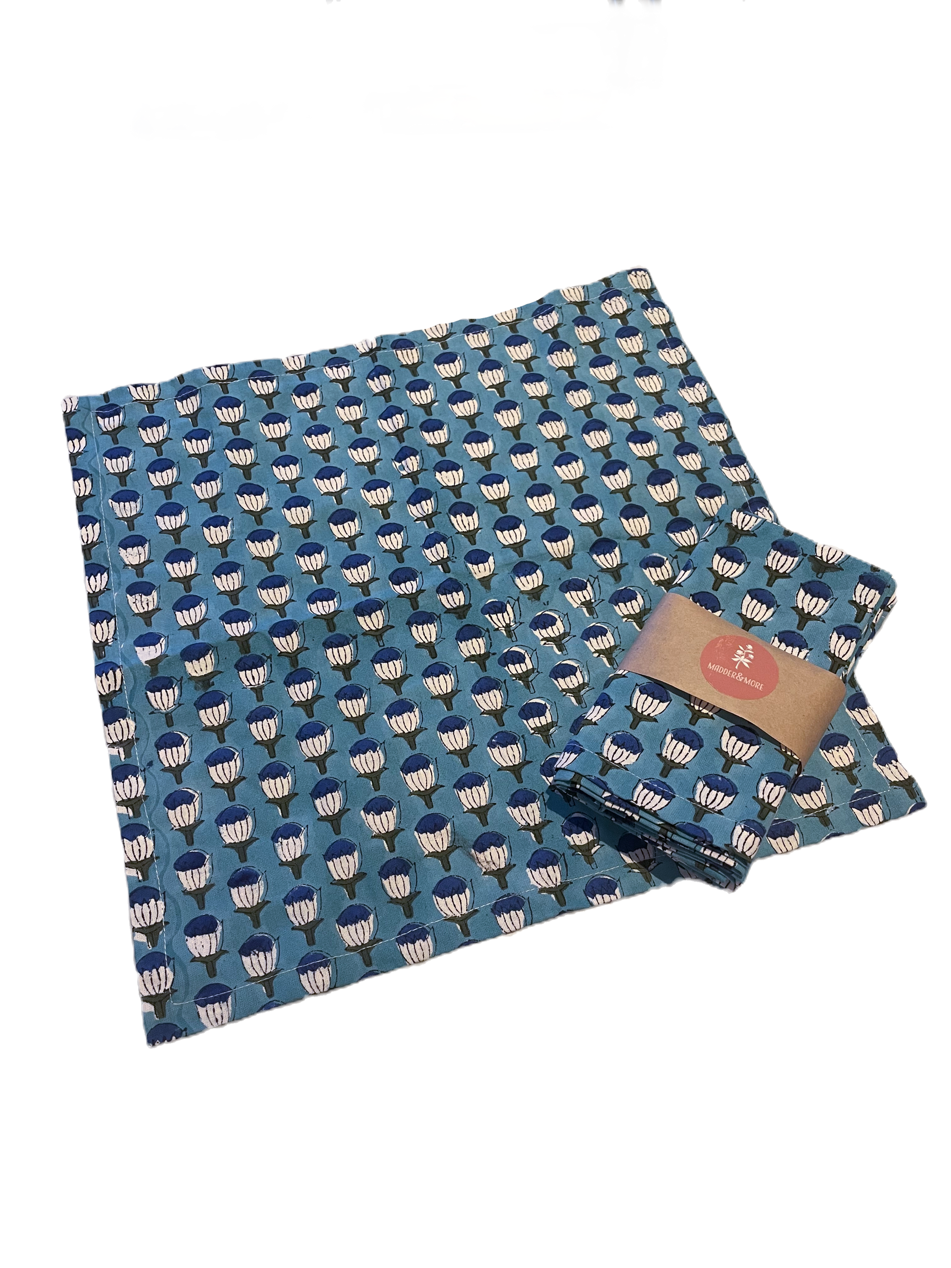 Set of four hand block printed napkins, the finishing touch to your dinner table!