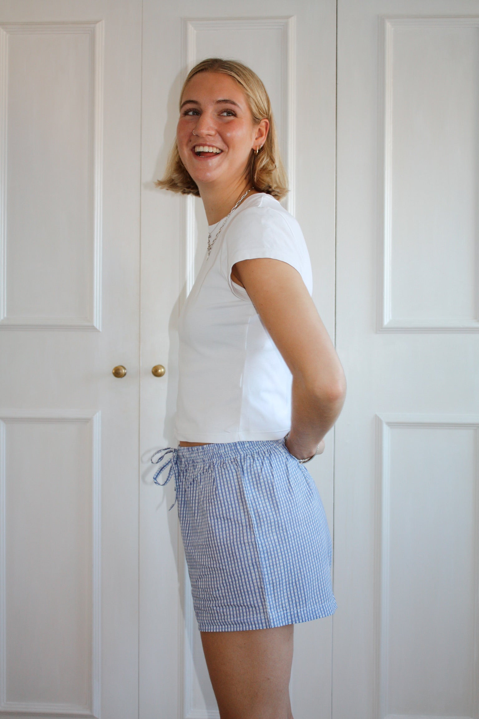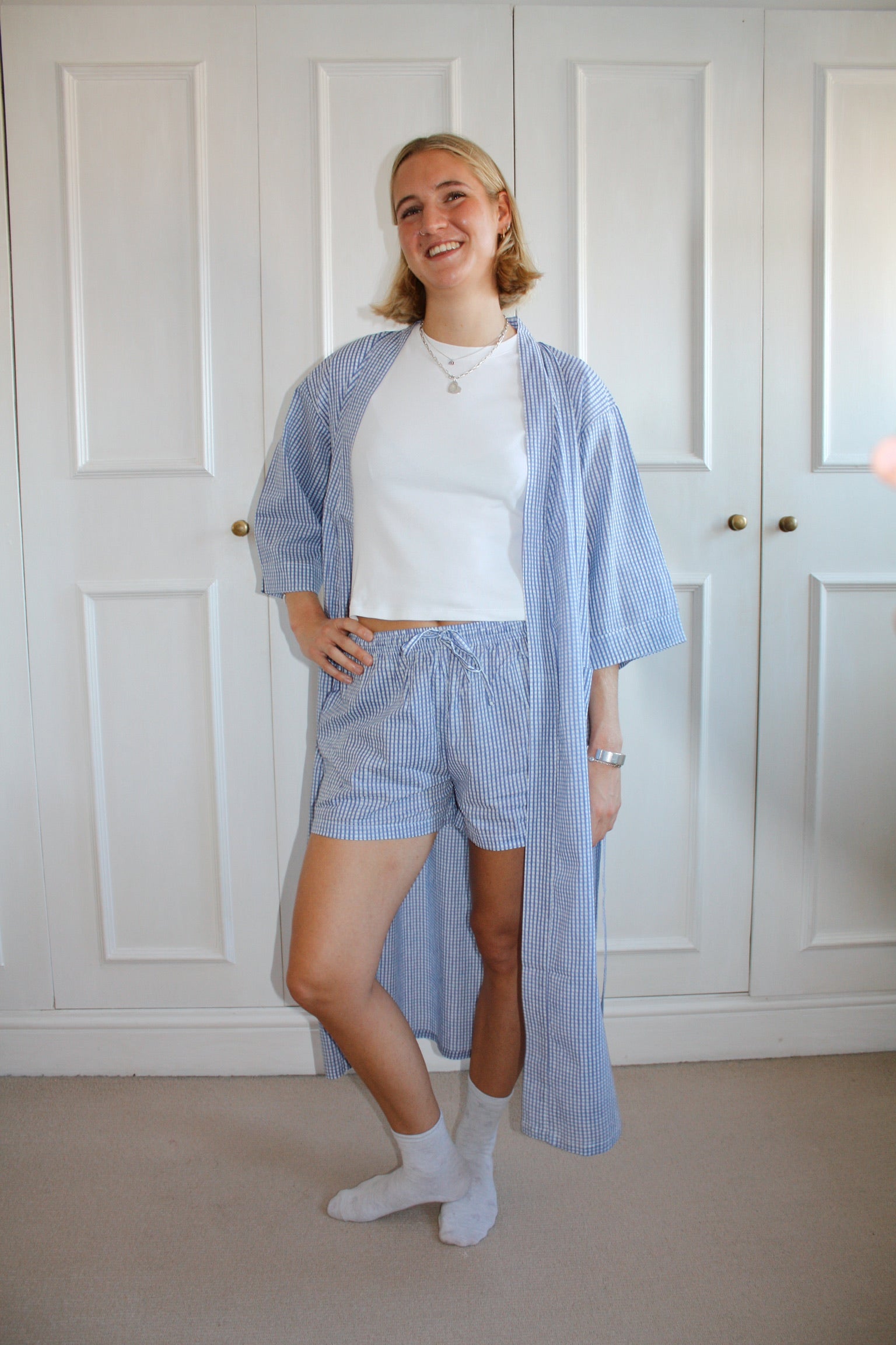 We all love a bit of gingham, but have you seen hand printed gingham before? Our two-tone blue gingham design is a modern take on a classic pyjama. All our shorts are handmade and printed by artisans in Jaipur. The elasticated waist, drawstring and supersoft cotton are perfect for taking you from your bed to the beach! The fabric is hand printed so please allow for discrepancies in designs as each set is unique.
