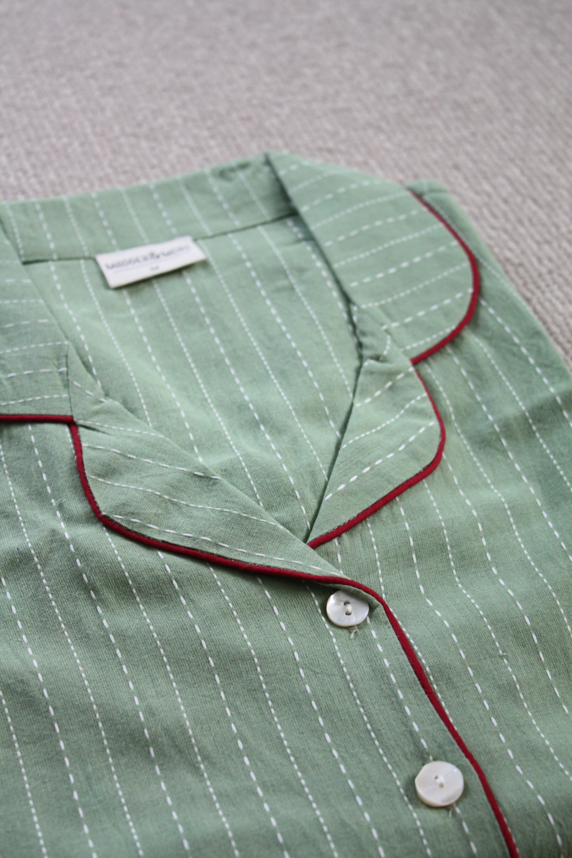 Our new handloom pyjamas are made with high quality cotton, perfect for winter nights. A little heavier than our printed pyjamas, they are even softer and lovely and warm. All our pyjamas are handmade by artisans in Jaipur and come in a matching pyjama bag. Their oversized, boxy fit and supersoft cotton are perfect for cosy nights in. The fabric is woven by hand so please allow for discrepancies in designs as each set is unique.