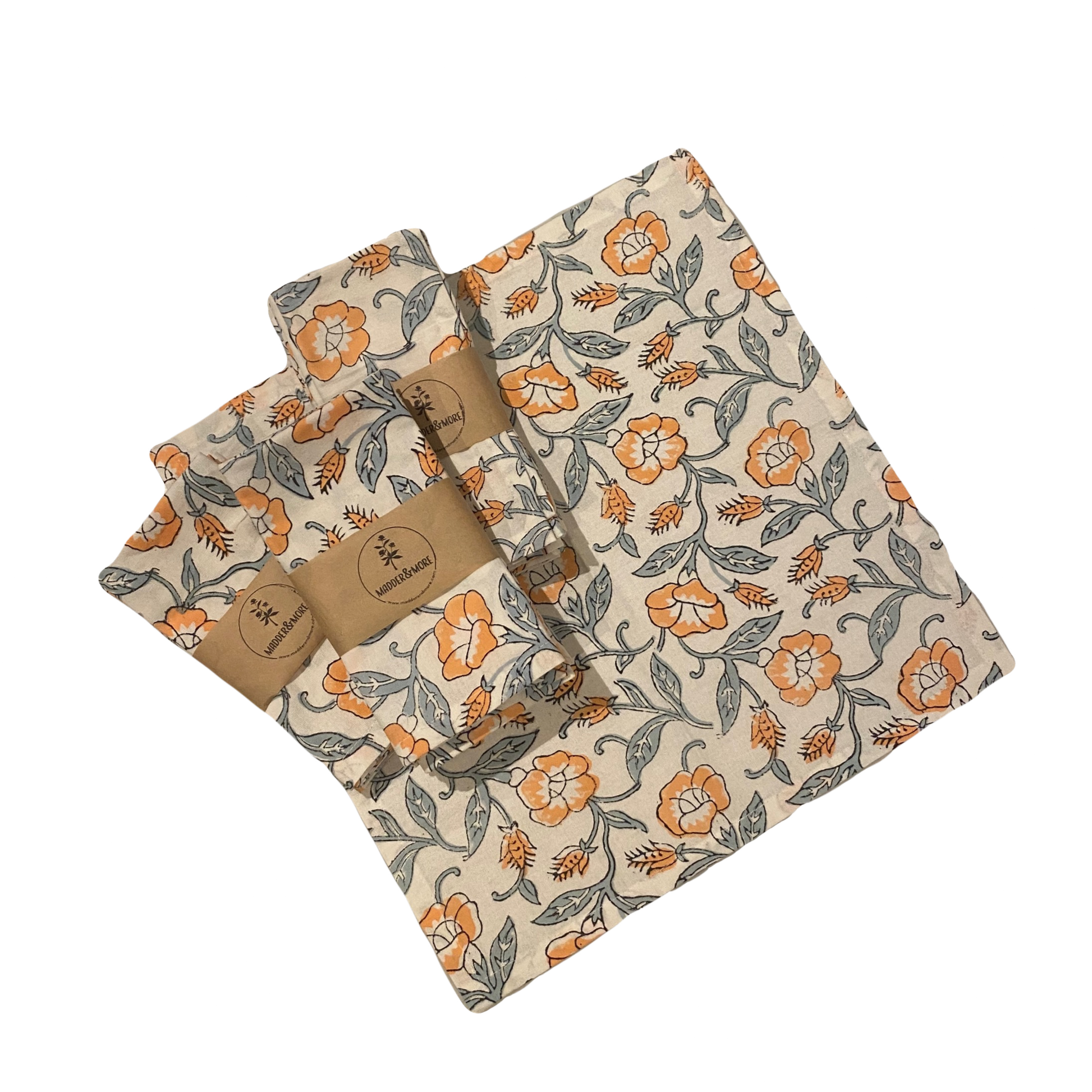 Set of four hand block printed napkins, the finishing touch to your dinner table!
