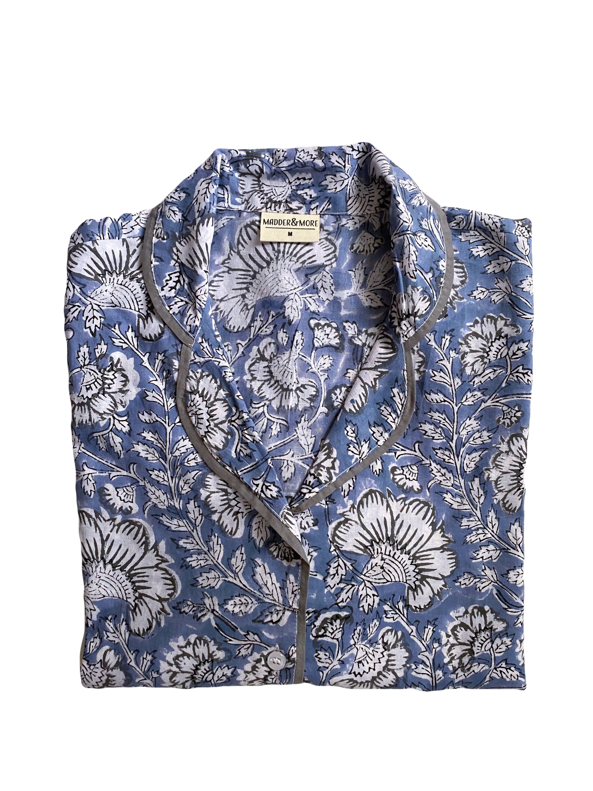 Our block printed long pyjama sets are handmade in Jaipur. The fabric is hand printed so please allow for discrepancies in designs as each set is unique.