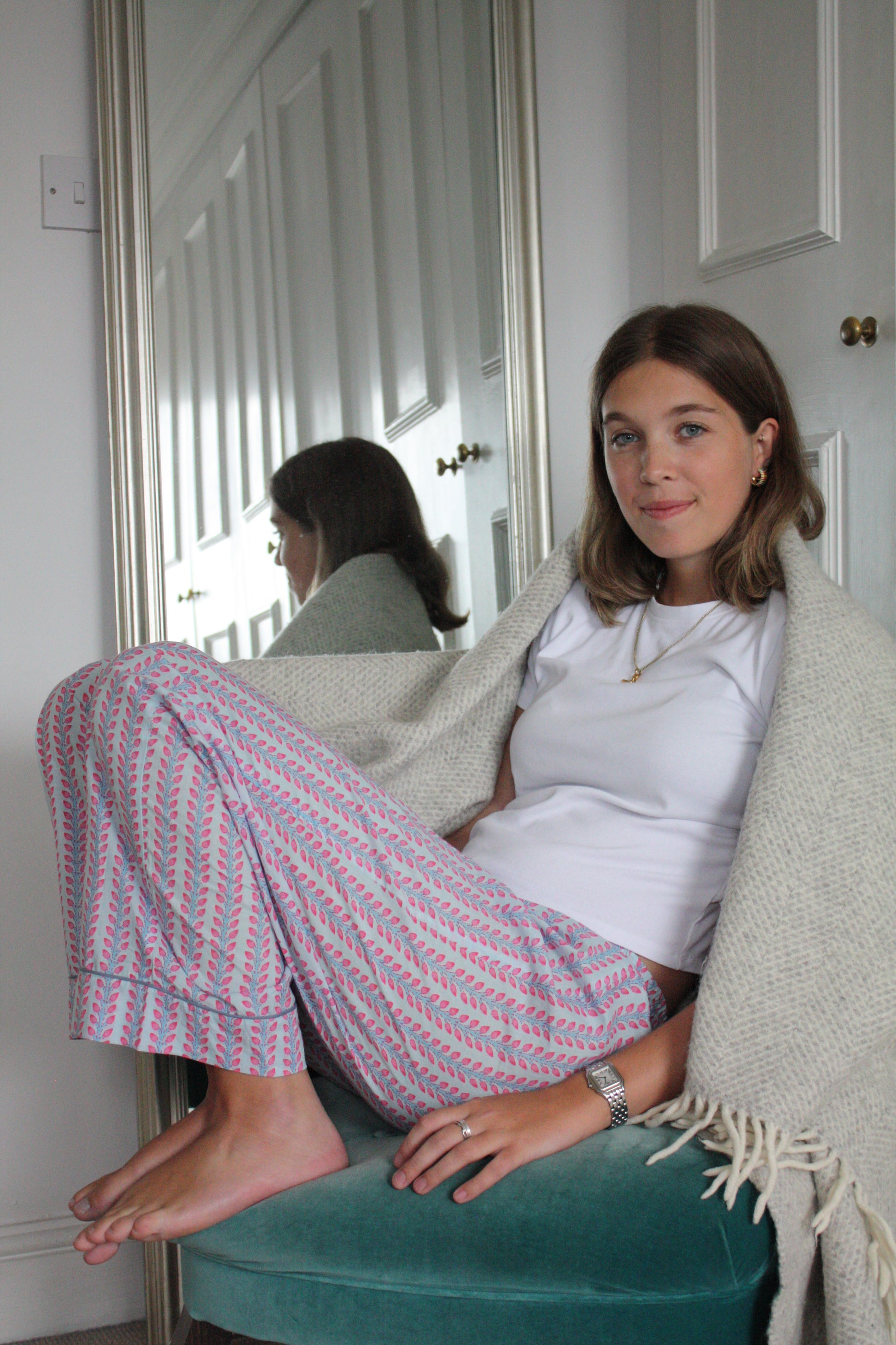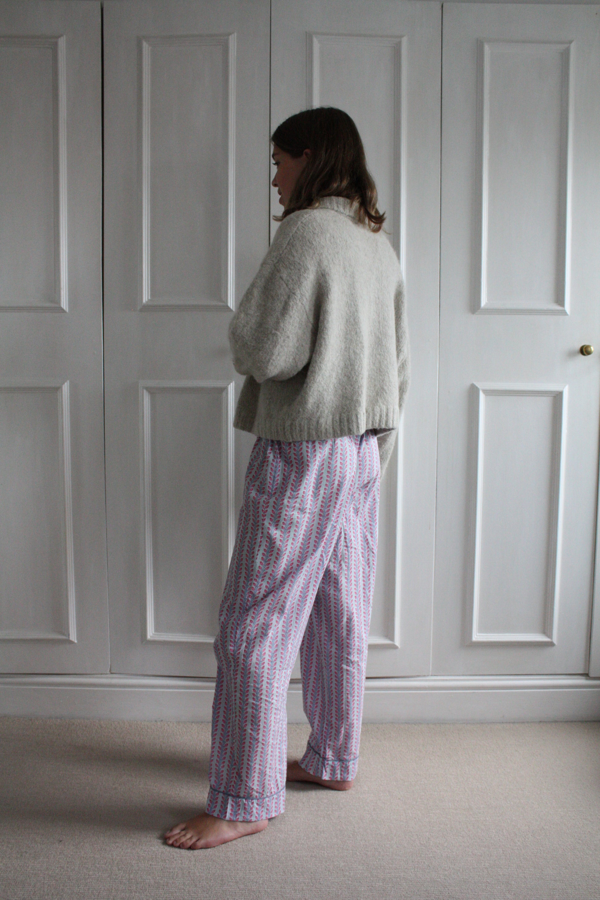 Block printed pyjama bottoms handmade in Jaipur. The fabric is hand printed so please allow for small discrepancies in designs as each pair is unique.